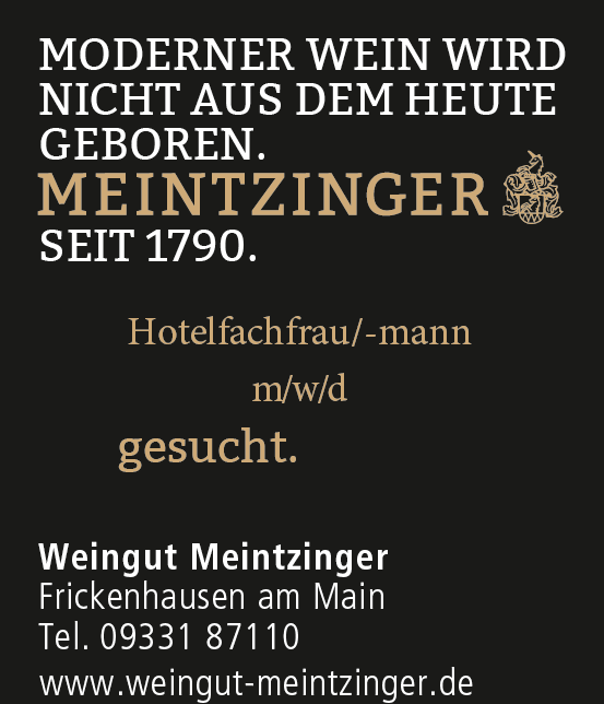 Wir, das Weingut & Hotel Meintzinger, suchen eine Hotelfachfrau/-mann zur Voll- oder Teilzeit, die bereits Erfahrung in unserer Branche sammeln konnte.